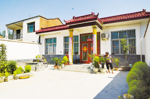 近段时间以来,项城市新桥镇通过新型农村社区建设,极大改善了村民的居住环境,提高了村民的幸福指数。图为新桥镇蒋楼行政村一农民正在自家院子里浇花。杨光林 蒋树保 摄