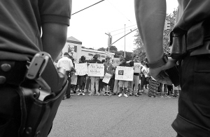 纽约民众举行示威游行抗议警察暴力执法 8月23日,在美国纽约市斯塔滕岛,警察在示威游行现场执勤。当天,数千人在纽约市斯塔滕岛举行游行,抗议警察暴力执法,呼吁公平正义。