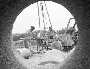 昨日,商水县城关乡大刘村村民正在田间打井。针对前一阶段出现的旱情,该县紧急组织多支打井服务队在全县20多个乡镇帮助农民打井,以防旱情再次发生。目前,该县已新打机井100多眼。 (刘飞 魏红 摄)