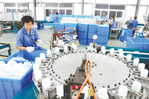 近年来,在产业集聚区建设过程中,太康县坚持搞好规划、产城互动、选好项目、大上项目,使产业集聚区建设步入了健康快速的发展轨道。图为该县产业集聚区内一名企业工人正在紧张工作。(记者 王映 实习生 耿嘉宁 摄)