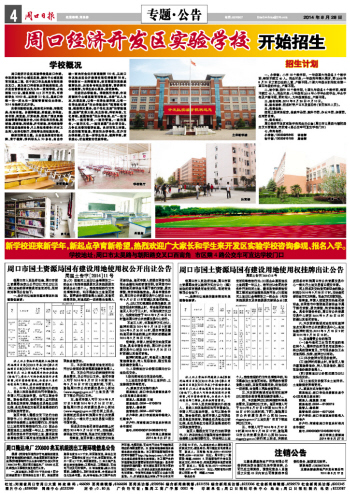 周口经济开发区实验学校招生办公室(周口市太昊路与朝阳路交叉口西南角,市区乘4路公交车可直达学校门口)