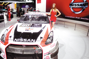 这是8月27日在莫斯科国际车展上拍摄的日产公司展区。当日,2014莫斯科国际车展拉开帷幕,包括中国企业在内的全球各大汽车厂商在第一天的“媒体日”中展出新款车型。