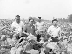 宁平镇大力发展特色规模种植和订单农业,帮助群众走上致富路。其中种植烟叶近500亩,与收购企业签订了收购合同,实现生产、加工、销售一条龙服务。图为该镇党委书记张立志和市社科联下基层工作队在特色种植园查看烟叶生长情况。