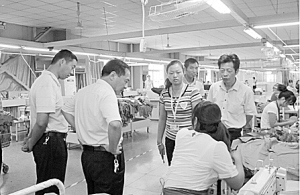 近日,郸城县台办和县安监局深入台资企业鼎祥制衣有限公司,指导企业安全生产。县台办和安监局相关负责人详细了解了公司的生产经营现状和安全生产情况,并认真查看企业各生产环节、员工安全保障措施和安全责任落实情况,要求严格落实安全生产责任制,坚持不懈抓好安全生产,健全完善安全生产预警制度、定期自查机制和应急预案,及时排除设备运转和员工操作过程中存在的安全隐患。(记者 卢好亮 通讯员 陶杰 摄)