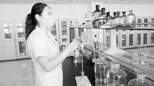 为了让消费者节日期间使用上安全放心的食品,沈丘县质量技术监督局对全县食品生产企业进行抽样检测。图为该局食品化验室工作人员正在进行样品检测。(记者 孙安平 摄)