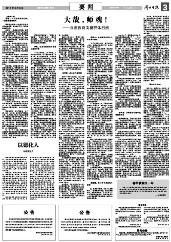 我市还以师德师风建设年,“十大师德标兵”、“十大名优教师”、“十大名优校长”评比等系列活动为载体,狠抓师德师风建设,教师的师德水平、职业素养和基本素质都有所提升,涌现出一大批爱校如家、爱生如子、爱岗敬业的优秀教师。