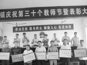 9月9日,商水县魏集镇党委和政府召开教师节表彰大会,向尊师重教的党支部、工商联等先进单位和优秀教师颁发了牌匾和荣誉证书。图为颁奖现场。 记者 岳建辉 通讯员 苏建广 摄