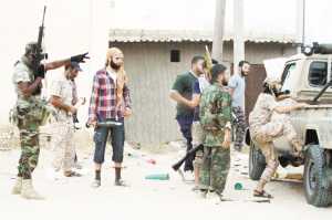利比亚民兵武装在的黎波里市郊激战 9月16日,在利比亚首都的黎波里沃什法纳区,几名“利比亚黎明”武装人员准备发射火箭弹。当日,利比亚支持宗教势力的民兵武装“利比亚黎明”与支持世俗势力的民兵武装在的黎波里市郊的沃什法纳区激战。 新华社发
