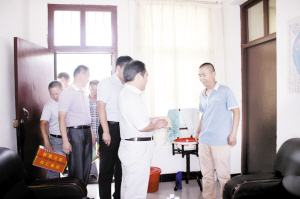 近日,项城市委政法委和团市委相关负责人来到该市人民公园管理处,看望慰问见义勇为先进个人张岗(本报9月5日报道过他的相关事迹),为他送去了慰问金和一些生活用品。杨光林 张永久 摄