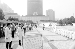 9月20日是全国爱牙日。当日,河南省“ 健康每一天 ,从爱牙开始”大型慈善活动在郑州绿城广场举行,周口口腔医院派出一支医疗队代表我市参加了该项活动,现场发放口腔保健知识手册两万余份,受到省级有关部门的表扬。(本报记者 摄)