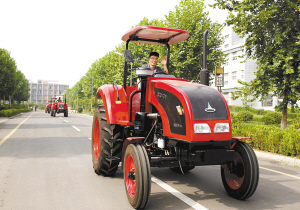 扶沟县产业集聚区是经河南省政府批准的全省首批产业集聚区,2006年开始建设,总规划面积14.3平方公里,已建成区面积8.7平方公里,形成了纺织服装、机械制造、食品加工、综合服务四大功能区。图为该县产业集聚区某机械厂生产的大型拖拉机。