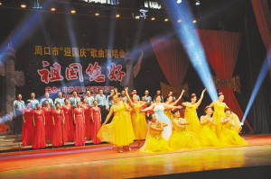 本报讯 (记者 李凤霞)9月26日晚,由周口市委宣传部、市文广新局主办,市群众艺术馆承办的周末公益剧场特别节目“祖国您好”周口市迎国庆歌曲演唱会在周口人民会堂举行。市委常委、宣传部长陈锋,市人大常委会副主任解冰山,市政协副主席杨珺与广大市民一起观看了演出。