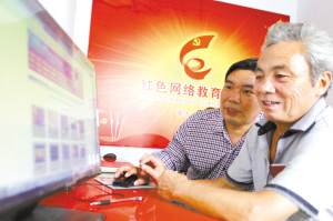 昨日,商水县汤庄乡工作人员在“红色网络教育家园”指导一名农村党员浏览网页。商水县依托“公共电子阅览室”和乡镇群众工作中心,建设了3个“红色网络教育家园”示范点,每个示范点都配备了8台以上电脑,每天上班时间免费开放。党员群众只需出示有效身份证件,就可免费上网查阅党建动态、市场信息等。(刘飞 魏红 摄)