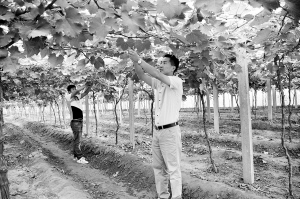 “这个是红提,果皮很容易剥离,吃起来细嫩多汁……”9月25日,北城办事处大辛营村村民辛建在自家葡萄园里不停地向记者介绍。这座占地10余亩的葡萄园是利用废弃的炮厂改造而成的,总投资30万元,如今每亩盈利在2万元左右。 (记者 韦伟 通讯员 肖飞 崔丽 摄)