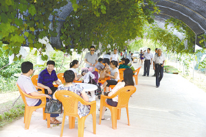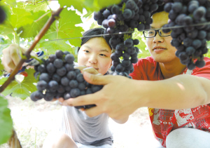 国庆期间,西华县东王营乡玉桂千亩生态葡萄园迎来了众多观光游客。该园种有“香妃”、“夏黑”等15个优质品种,每年采摘期从7月中旬到10月中旬,是市民观光、休闲、娱乐的好去处。 (记者沈湛摄)