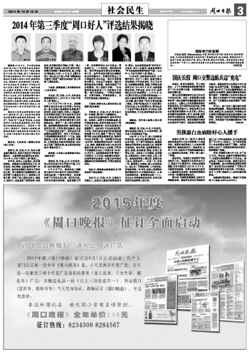 2014年第三季度“周口好人”评选结果揭晓
