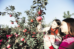 沈阳农大“校园农场”苹果飘香 10月13日,沈阳农业大学的几名学生在“寒富”苹果试验园采摘苹果。近日,沈阳农业大学校园内的20余亩“寒富”苹果试验园喜获丰收。该试验园全部由学生自已栽培、管理,锻炼学生动手能力、培养吃苦耐劳精神,有助于学生将课堂上学到的知识应用到实践中。新华社发
