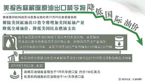 新华社华盛顿10月20日电 (记者 郑启航 高攀) 美国联邦机构政府问责局20日发表报告称,解除美国原油出口禁令将增加美国原油产量,降低全球油价,降低美国民众燃油支出。该机构同时建议政府根据最新及未来石油市场形势调整美国战略石油储备。
