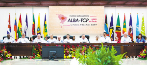这是10月20日在古巴首都哈瓦那会议宫拍摄的美洲玻利瓦尔联盟“应对埃博拉”特别峰会现场。