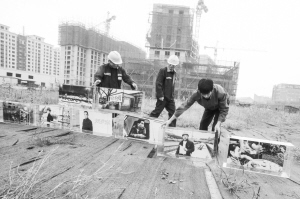 记录展“你们的汗水 我们的房子”在京开幕 10月23日,工人在工地上摆放贴有摄影作品的透明砖。当日,记录展“你们的汗水,我们的房子”在北京一处建筑工地开幕。该展览作品由媒体人杨浪拍摄,从2013年9月开始,杨浪对北京门头村回迁楼工地进行为期一年的持续拍摄,他用手机记录下房屋拆迁、建筑工人入驻、打地基、做防水、铺设管线、搭脚手架、封顶建成,直到住户看房的整个过程。