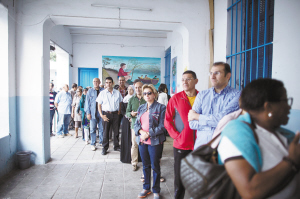 10月26日,在突尼斯首都突尼斯市的一个投票点,选民们排队等待投票。