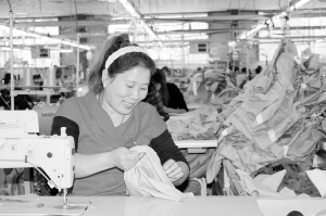 昨日,项城市某服装企业车间工人正在紧张制作服装。项城市坚持市场主导、集群发展、持续发展、自主创新、项目带动、惠及民生等六大基本原则,打造出了一批重点服装企业,引领了项城经济的跨越式发展。(张永久 摄)
