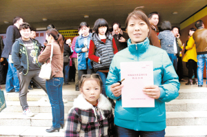 昨日,项城市经济适用房惠民小区开始为业主签订购房合同、发钥匙。据了解,项城市共投资4亿多元启动实施了保障性住房10500多套,使低收入群众住房问题得到了解决。图为业主拿到购房合同时喜笑颜开。(张永久 摄)