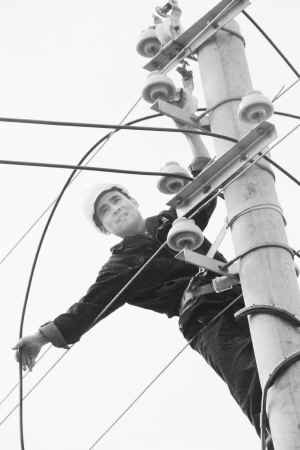 11月4日,商水县郝岗乡供电站工作人员在东洄村整改线路。在党的群众路线教育实践活动中,郝岗乡供电站建立长效服务机制,实时对老化的线路进行统一整改,确保群众用电安全。