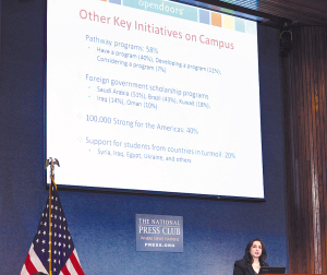 11月17日,美国国际教育学会发布2014年度《门户开放报告》。报告显示,2013~2014学年中国大陆在美大学留学生比上一学年增长16.5%,达到27.4万人,是在美国际学生的头号来源地。 新华社记者 鲍丹丹 摄