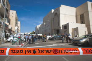 11月18日,遇袭的犹太教会堂附近被以色列警方封锁。以色列警方18日说,耶路撒冷一个犹太教会堂当天早晨遭到袭击,造成4名犹太人死亡、2名袭击者被打死。 新华社记者 李睿 摄