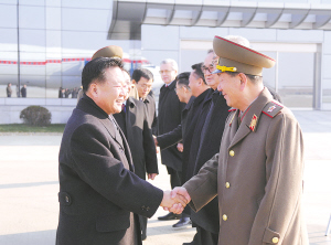 朝中社11月17日提供的照片显示,朝鲜最高领导人金正恩特使、朝鲜劳动党中央政治局常委、中央书记崔龙海(左一)17日乘专机离开平壤,赴俄罗斯进行访问。 新华社/朝中社