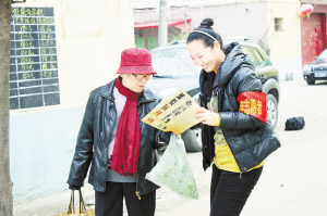 11月17日,项城市政协干部向居民宣传文明创建工作,号召大家为文明创建活动贡献力量。(张永久 摄)