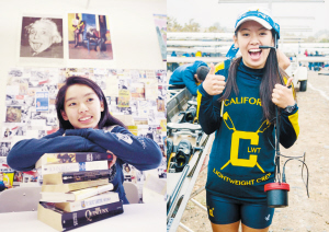 这张拼版照片左图为新华社记者戚恒于2009年11月3日拍摄的汉娜在她就读的学校平面美术设计教室里;右图为汉娜提供的她在上大学后一次划艇练习前的照片。