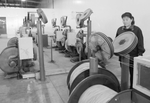 11月25日,一名工作人员在阳光电缆厂房内检查设备运行工作。位于周口高新技术开发区的周口阳光电缆有限公司,是一家集研发、生产为一体的通信电缆专业生产商,拥有全球一流的生产、检验设备,产品畅销北美及欧洲市场。