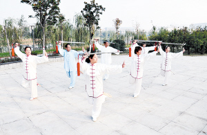 项城市深入贯彻实施全民健身计划,着力建立“政府为主导,协会为主体,城乡联动,全民参与”的全民健身机制,不断丰富群众体育活动,促进了全民健身活动蓬勃发展。图为该市市民在驸马沟生态公园参加健身活动。
