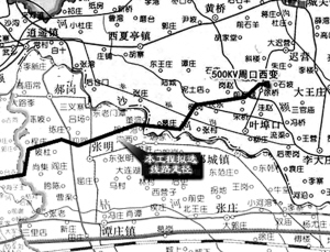 建设项目拟选位置:周口西变位于周口市西华县迟营乡徐桥村东北侧。线路从邵陵变出线进入周口市后,依次经张明乡北、邓城镇北、叶埠口乡北进入周口西变。