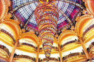 11月27日,法国巴黎老佛爷百货公司内装饰了一棵25米高的圣诞树。近日,巴黎市点亮香街彩灯,开放香街市场,启动摩天轮、搭建市政厅溜冰场,装饰大型商场橱窗,迎接圣诞和新年的到来。新华社发