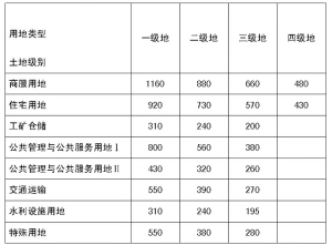 淮阳县城区土地级别及基准地价一览表
