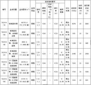 备注:TK2014-19号、TK2014-44号两宗土地规划用途为家纺及纺织品展销批发项目用地;TK2014-46、TK2014-47号两宗土地为商住用地其中商服用地占15%,居住用地占85%;TK2014-52号、TK2014-53号、TK2014-54号三宗土地规划用途为农产品批发市场用地。