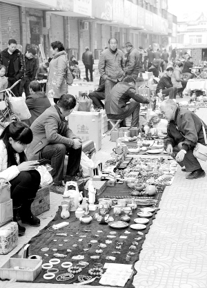 近年来,每逢周五市区男人街女人街书画古玩市场热闹非凡。这个成立不久的书画古玩市场吸引了很多周边县市甚至外省的藏品经营者和收藏爱好者。目前,该书画古玩市场拥有固定的书画古玩店铺30多家,流动商铺近千家。为举办民间藏品展示交流活动、促进规范艺术品流通和发展文化产业创造了条件,其影响和作用也越来越大。越来越多的精美藏品出现在周口人的手中,越来越多的收藏爱好者来到周口交流。