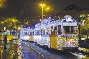 布达佩斯有轨电车装饰彩灯迎圣诞