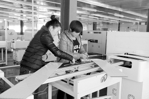 日前,太康县雷烁光电科技园两名检测人员在工作岗位上一丝不苟工作着。