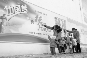 扶沟县柴岗乡梅桥村把图文并茂的科普图片、漫画、文明标语、励志格言、寓言故事等做成文化墙,把村头巷尾装扮得五彩缤纷,让群众在日常生活中耳濡目染、潜移默化地受到影响和教育。图为人们驻足欣赏该村文化墙。
