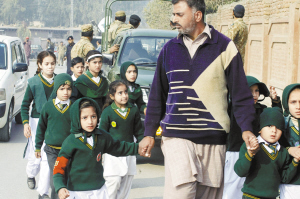 巴基斯坦学校袭击事件死亡人数已上升到126人 12月16日,在巴基斯坦白沙瓦市,一名男子疏散遇袭学校的学生。巴基斯坦开伯尔—普什图省官方发言人16日说,当天发生的白沙瓦军人子弟学校遇袭事件死亡人数已上升到126人,另有122人受伤。新华社发