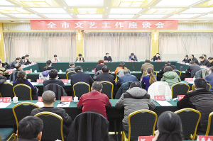 本报讯 (记者 王艳 李凤霞) 12月16日上午,全市文艺工作座谈会召开。市委书记徐光出席会议并讲话。他强调,全市文艺界和广大文艺工作者要深入学习贯彻落实习近平总书记在全国文艺工作座谈会上和省委书记郭庚茂与全省文艺界代表座谈时的讲话精神,牢记使命,不负重托,把握机遇,传承创新,努力开创周口文艺工作新局面,为实现周口崛起、富民强市、全面建成小康社会作出新的更大的贡献。