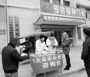 日前,为有效预防麻疹、腮腺炎和风疹,确保广大儿童健康成长,沈丘县疾控中心在全县范围内开展麻风及麻腮风疫苗的查漏补种工作。在居民小区、学校、乡镇卫生所等单位,通过发放《告儿童家长书》、张贴宣传图画向广大居民宣传防疫知识,并免费为全县儿童8月龄至7岁儿童进行麻疹疫苗强化免疫,家长可凭接种证到相关接种单位免费为孩子接种疫苗。图为县疾控中心医护人员在向儿童家长讲解防疫知识。(记者 韦伟 通讯员 张洁 摄)