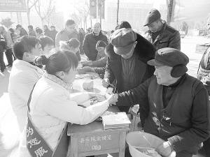 近日,太康县卫生局按照县委宣传部、县文明办的要求,积极组织县人民医院的青年志愿者到太康县人民广场开展义诊活动,志愿者们为过往市民免费测量血压,耐心解答他们提出的问题,并就冬季如何预防疾病、提高自身保健意识进行了宣教。(记者 刘俊涛 摄)