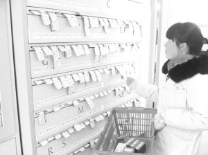 医务人员在中医配方颗粒调配柜前取药