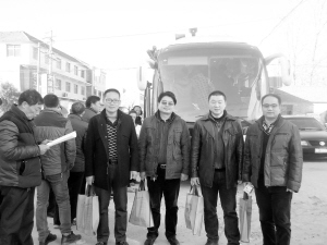 献血的教师们在无偿献血车前合影。