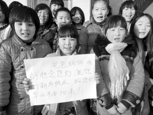 左下图:2014年12月30日,商水县舒庄乡杜店小学的留守儿童通过亲情电话、亲情视频、亲情短信等形式向在外打工的父母送去新年祝福。